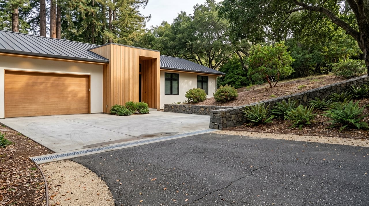 - Use permeable hardscape where you can to limit splash-back and staining. Keep irrigation off the house to avoid mineral streaking that binds with salt residue.